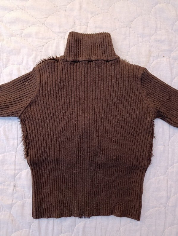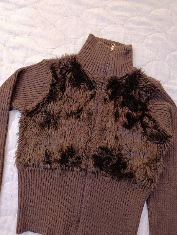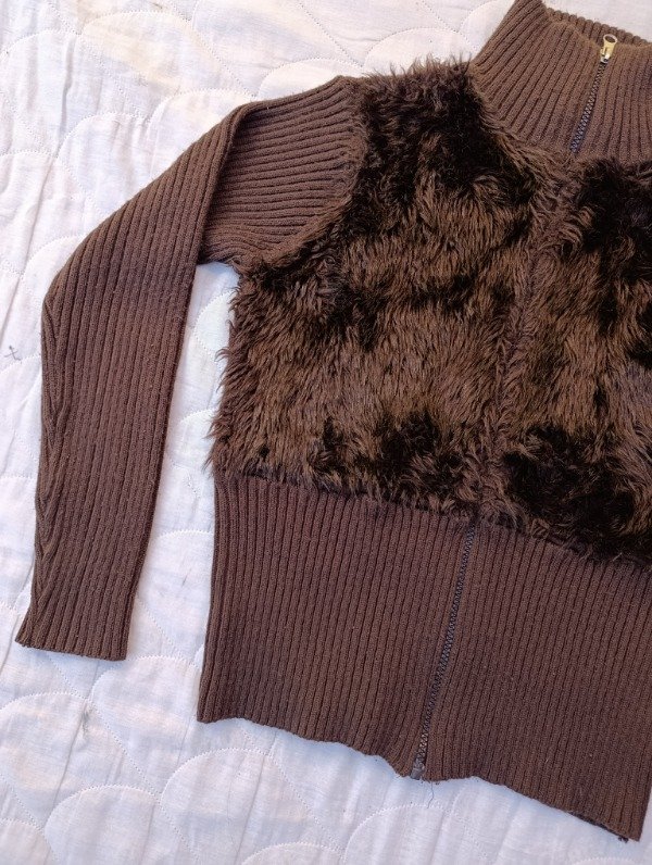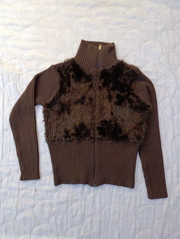 Campera de piel sintética y lana marrón